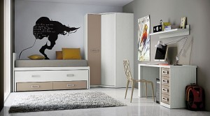 juvenil dormitorio nido con cajones armario en esquina en beige