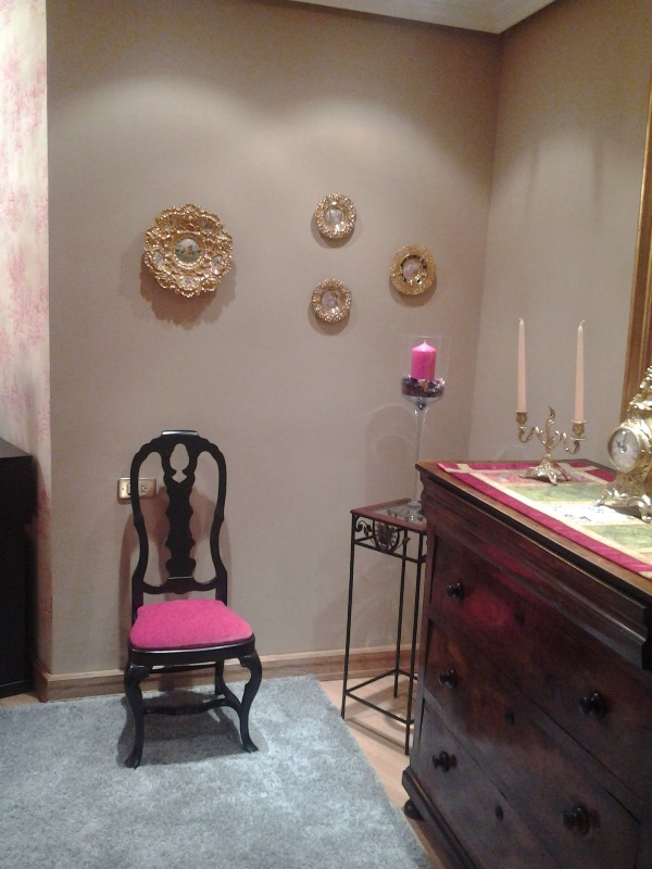 Las piezas clave de esta salita son las antiguas butacas restauradas por el Taller de Serranos, a las que se les ha dado el toque diferente con la fuerza del fucsia.