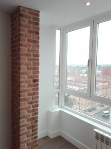 Decorar pilar terraza unida al salón revestimiento imitación ladrillo